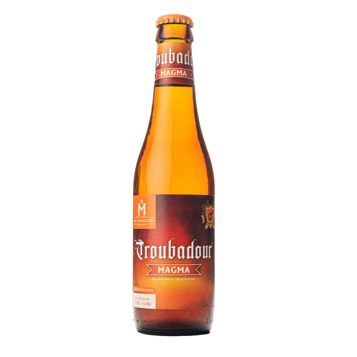 Troubadour Magma is een Amberkleurig bier met het kruidig en bitter karakter van een American Indian Pale Ale maar verzacht met de smaak van een Belgische Tripel. Geniet van de explosie van fruitige geuren afkomstig van de dry-hopping.