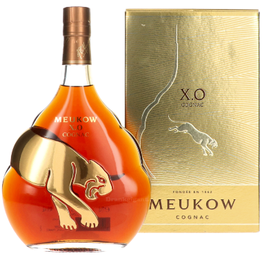 Meukow XO is een van de beste cognac soorten die Meukow in het assortiment heeft. De drank zit in de kenmerkende Meukow fles, de panter is bij deze editie goud gekleurd! De cognac bestaat uit eaux-de-vie van alle 4 de cognac regio’s. Hieruit ontstaat een verfijnde cognac die heerlijke pruim en sinaasappel tonen heeft. De ronde smaak wordt gevormd door de invloed van amandel en hazelnoot. Chocolade en leer zorgen voor een unieke twist aan deze zeldzame drank!