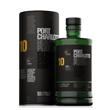 Port Charlotte 10 Years Heavily Peated is een zeer rijke Islay whisky die is gedistilleerd, gerijpt en gebotteld bij Bruichladdich in Schotland. Op de neus kent de whisky naast het rokerige karakter tonen van karamel, sinaasappel schil en zeewier.